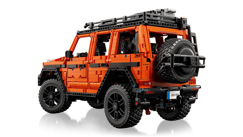 Take your time assembling details like the working steering and the raised suspension. Prop open the hood to check out the 6-cylinder in-line piston engine. Then try out the gearbox with its drive, neutral and reverse settings. Test the 2 differential locks, then open the doors to see the detailed interior. Adventurers will be happy to discover accessories like the ladder, spare wheel and roof rack, plus the opening tailgate and hood.