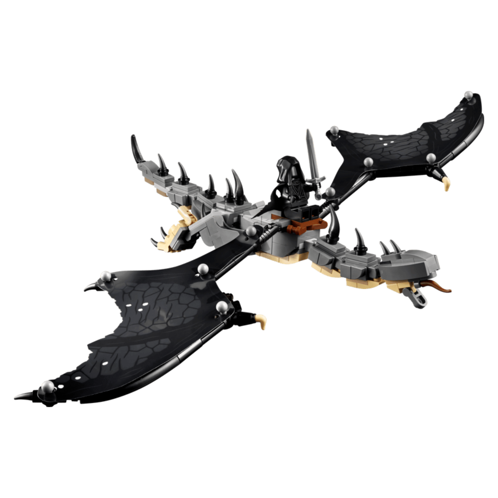 Craft a detailed interpretation of the formidable steed. Pose its wings and joints to recreate favorite movie moments, mount the Nazgûl minifigure on the Fell Beast’s back and place your creation on the ruined city of Osgiliath setting for a captivating display.